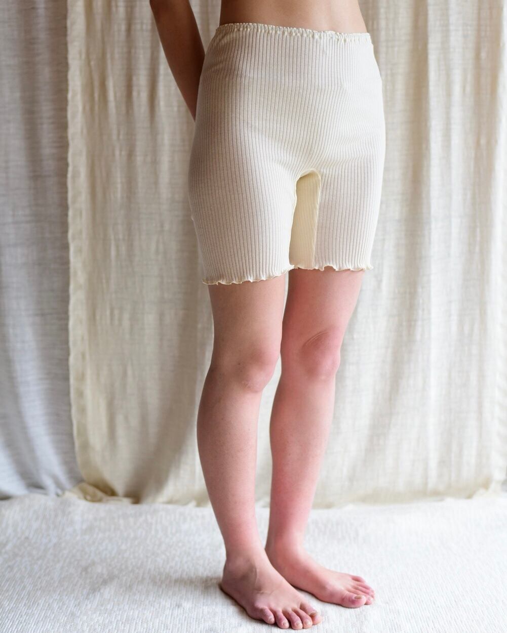 マチは二重で、裾はメロー仕上げ。季節問わず、ショーツなしでも着用いただけます。