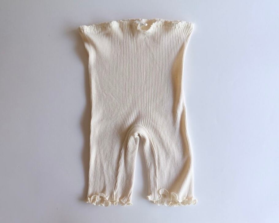 1枚1枚丁寧に仕立てたメローは、suganoorganicのこだわりのひとつ。波が均等に施され美しく、締め付けのない仕上がりで優しく肌にフィットします。