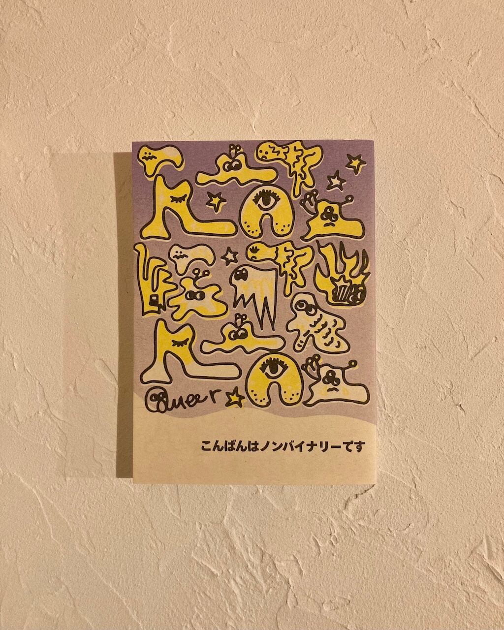 「こんばんはノンバイナリーです」ある日 Bluesky のタイムラインをそんな言葉が埋め尽くした。二〇二五年一月、アメリカでトランプが大統領就任演説で「性別は男女だけ」と発言したことを受けてだった。ノンバイナリーはここにいる。今、確かに、政府や公権力に認知されなくても、存在している。言うまでもないことなのに、当事者やそれに近しい人たちがそう声をあげ続けなきゃかき消される日々。それはトランプの件に限らず私たちの日常だった。わざわざ「いるよ」と言わなくても当然のように存在を想定される日が来ますように。その一歩を作るため、ノンバイナリーやそうかも知れない/近いアイデンティティを持つ者、実存するノンバイナリーと共に生きる者、総勢79名の声を一冊にしました。(まえがきより)