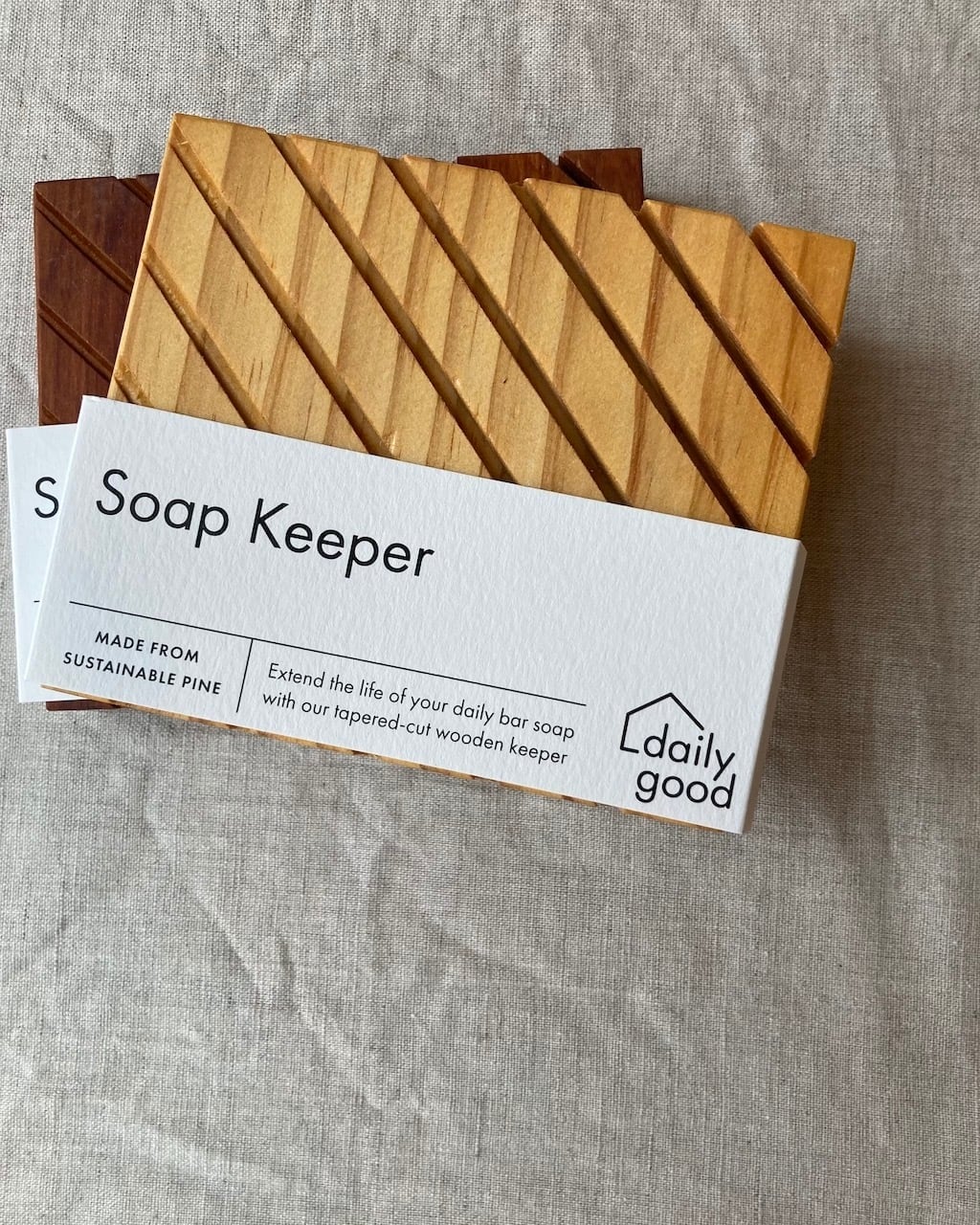 ソープーキーパーは天然オイルでコーティングされており、キッチンでの食器洗いせっけんやバスルームでシャンプーバーを置く場所として最適です。このソープキーパーを使うことで、せっけんも長持ちします。
