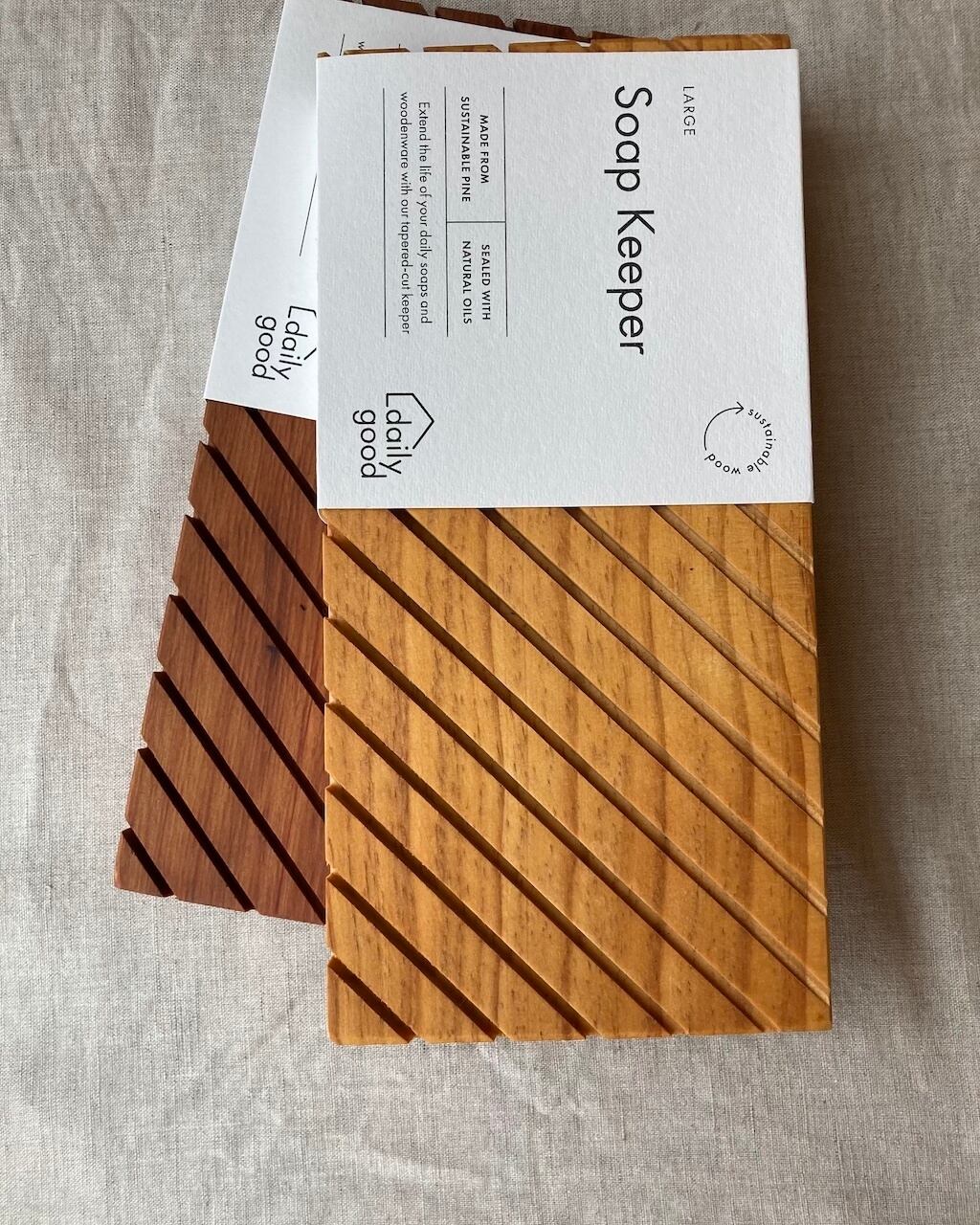 ソープーキーパーは天然オイルでコーティングされており、キッチンでの食器洗いせっけんやバスルームでシャンプーバーを置く場所として最適です。このソープキーパーを使うことで、せっけんも長持ちします。