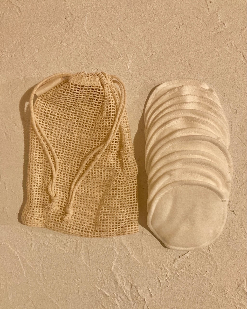 バンブーコットン12枚と洗濯用のコットンメッシュバッグのセットです。