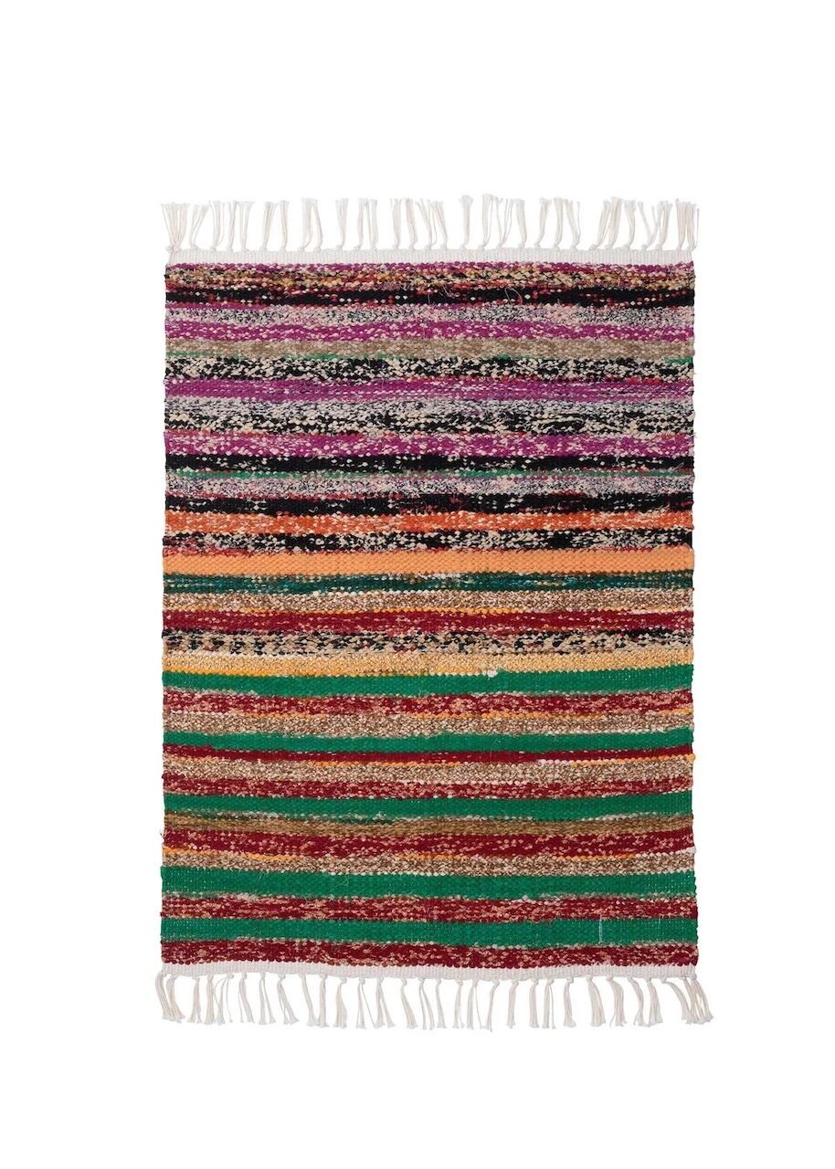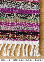 マルチカラーがお部屋に明るさをもたらすラグマットは、お部屋のコーナーやバス、トイレなどちょっとしたスペースに。両サイドにフリンジをあしらいました。
