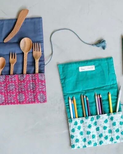 何を包むかは、もちろん自由。文具やカトラリー、お化粧セットなどなど、考えるだけで嬉しくなってきますね。皆さんの日常に合わせて、そして旅の可愛いお供にも、楽しみながらお使いいただけます。
