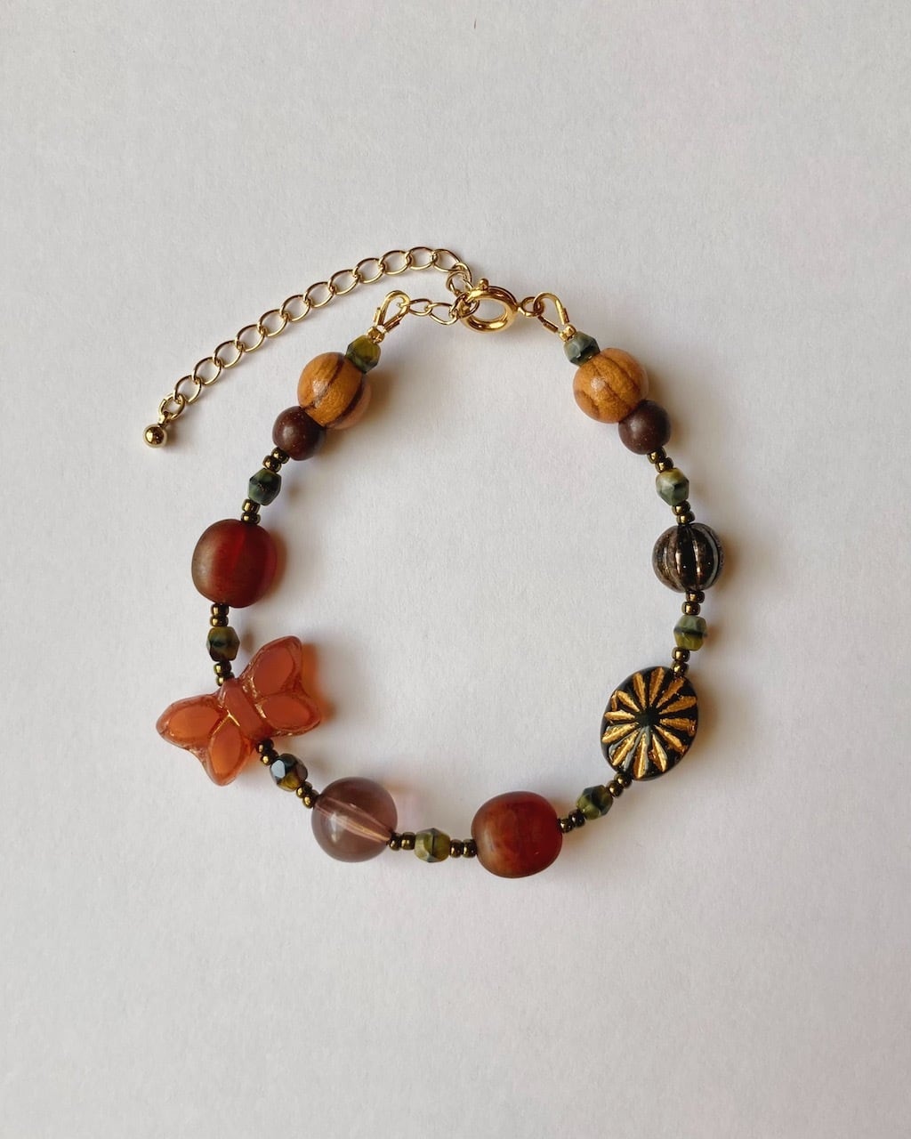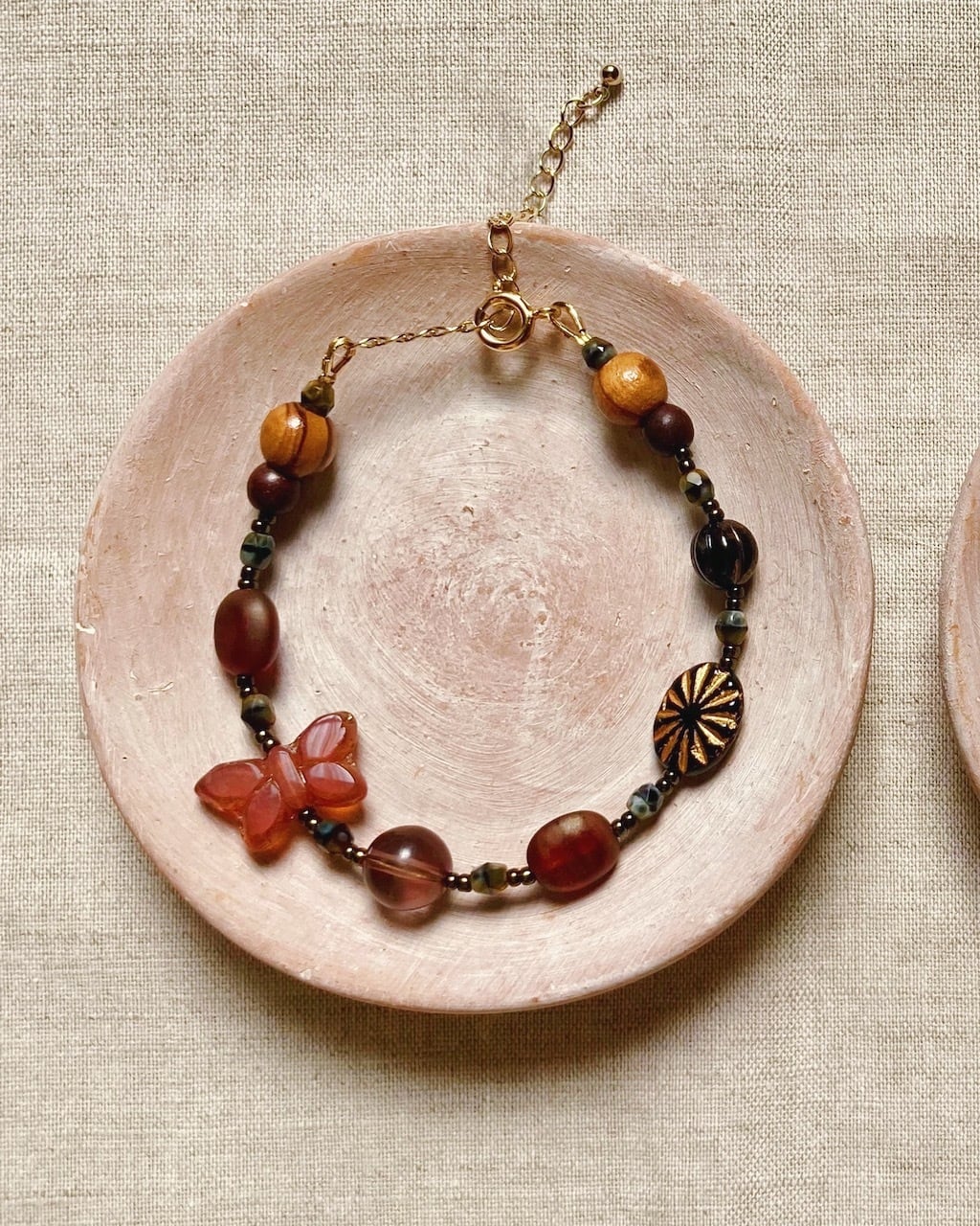 ヴィンテージビーズや、パレスチナで育ったオリーブの木のビーズなどを用いて作ったブレスレットです。