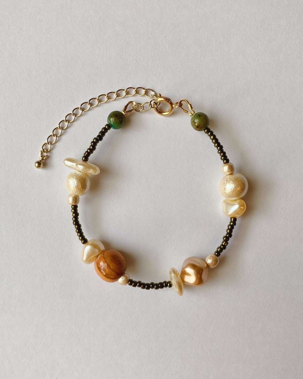 【パレスチナ支援】Bracelet - Pearl Dark green