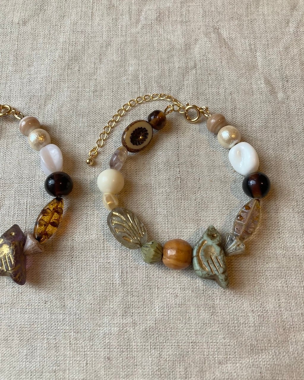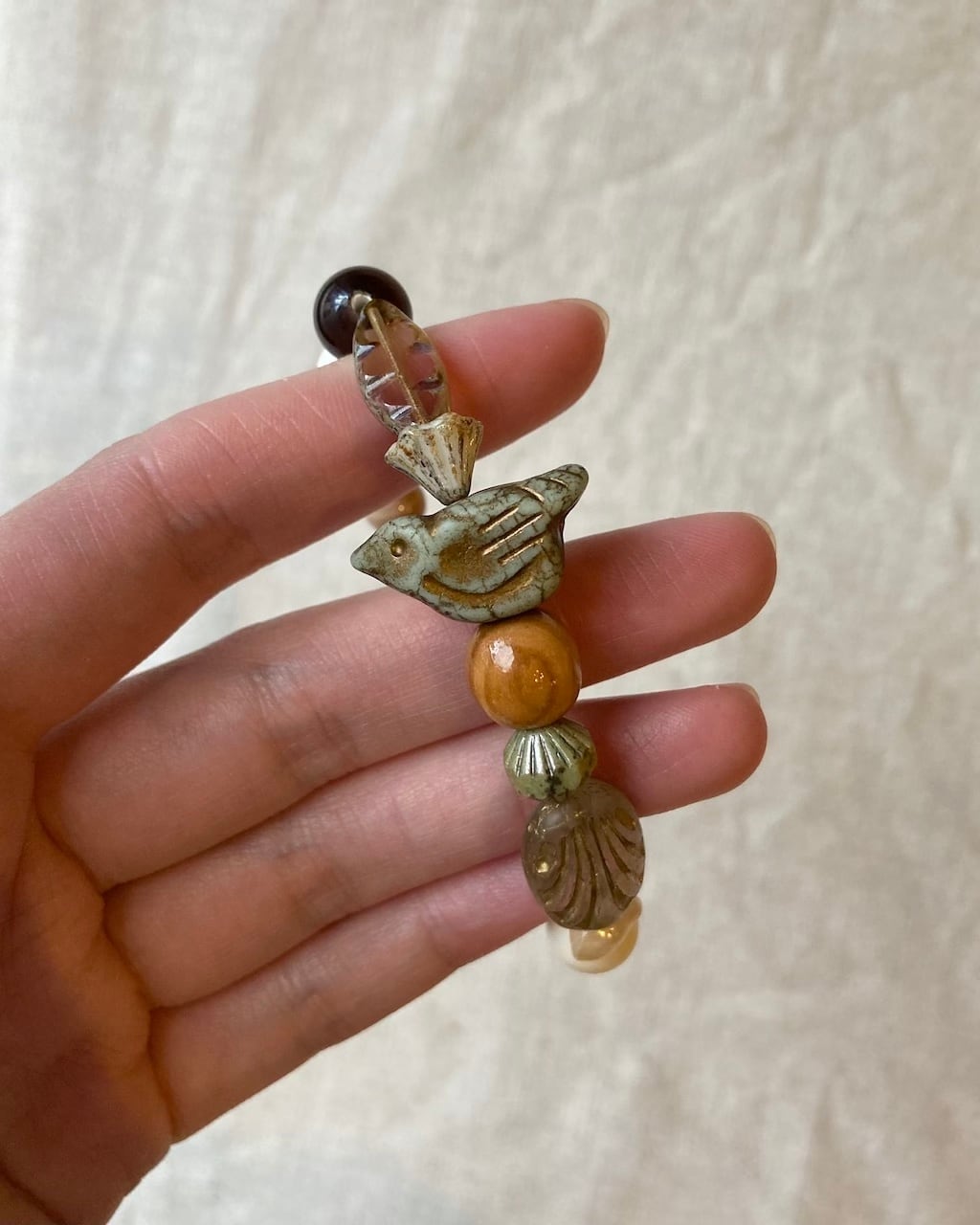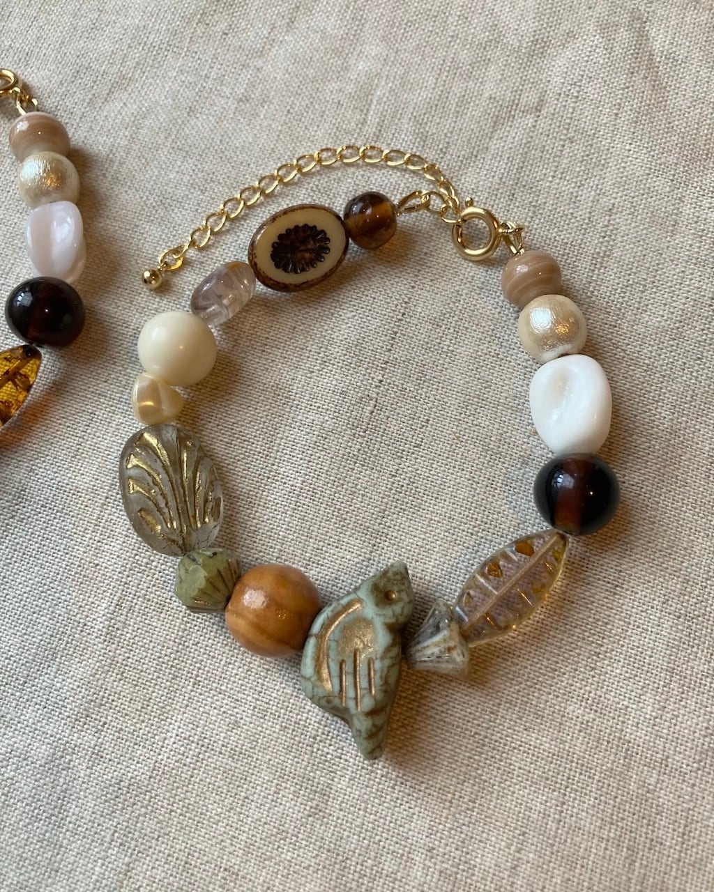 ヴィンテージビーズや、パレスチナで育ったオリーブの木のビーズなどを用いて作ったブレスレットです。